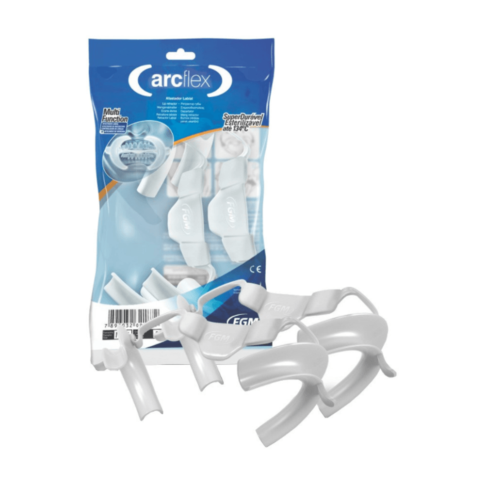 O Afastador Arcflex é utilizado para o afastamento dos lábios, bochechas, controle de língua e descanso da mordida, de forma confortável para o paciente. Indicado para auxiliar profissionais de diversas áreas da Odontologia.