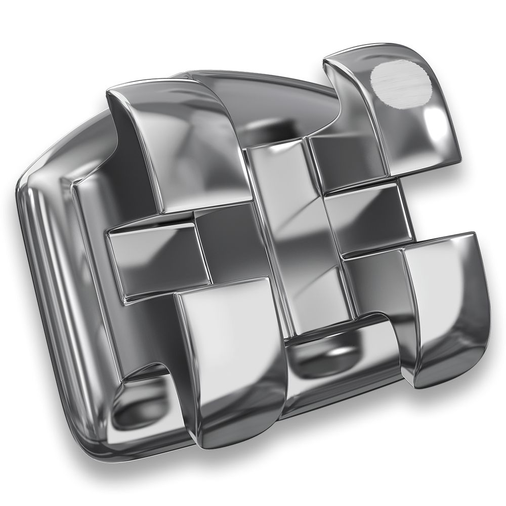 Dispositivo de correção ortodôntico. * Um Bráquete clássico, 3 peças soldadas por uma exclusiva técnica de solda a laser. * Fabricado em aço cirúrgico 17/4 PH, atendendo aos mais elevados padrões de qualidade a nível global. * A tela de 80 Microns, soldada a laser na base anatômica, assegura excelente adaptação e retenção. * Além de todos esses diferenciais, ele possui design anatômico e um perfil baixo proporcionando maior conforto para o paciente. * Marcação a laser do odontograma na base e identificação da linha média (longo eixo). * Registro ANVISA: 80328810045.