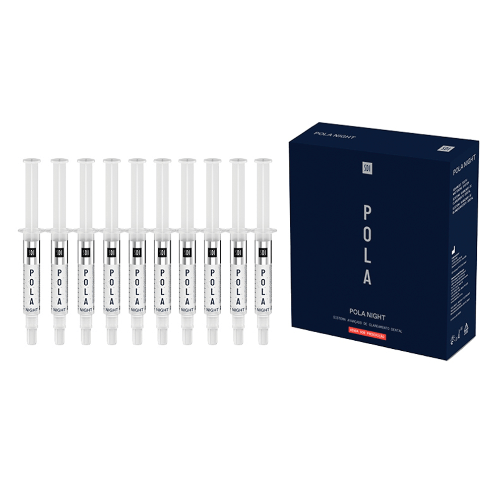 O Clareador Pola Night da SDI é um clareador de uso caseiro à base de peróxido de carbamida, indicado para a técnica de clareamento caseiro supervisionado por um cirurgião-dentista. Ideal para pacientes que possuem dentes mais sensíveis, graças a sua fórmula exclusiva com agente dessensibilizante que age nas extremidades do nervo e dessensibiliza a polpa-dentina, reduzindo a sensibilidade e maximizando o conforto do paciente durante e após o uso.