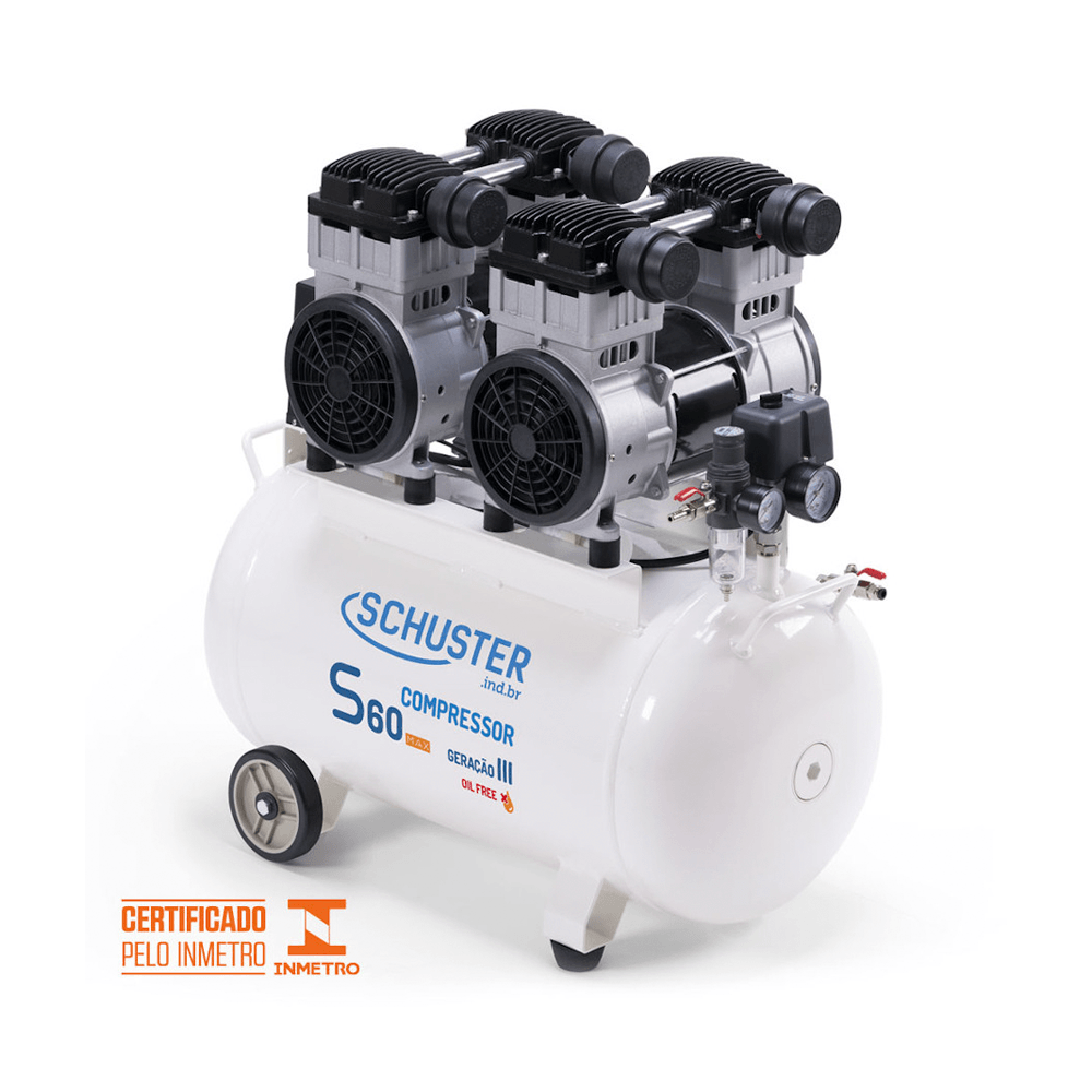 O Compressor de Ar S60 GIII Max da Schuster foi criado pensando em consultórios odontológicos que buscam eficiência, durabilidade e desempenho superior. Desenvolvido com tecnologia de ponta, este equipamento possui as seguintes caraterísticas principais.