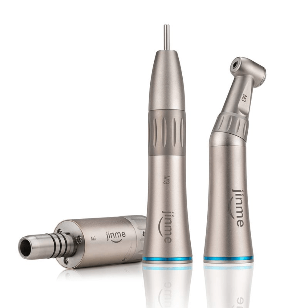 Apresentamos o M3, um conjunto completo de peças de mão pneumáticas de baixa rotação, projetado para atender às diversas necessidades dos profissionais odontológicos com eficiência e durabilidade. O conjunto M3 é composto por três peças essenciais: contra-ângulo, peça reta e micromotor pneumático, cada uma com características que destacam sua qualidade superior.