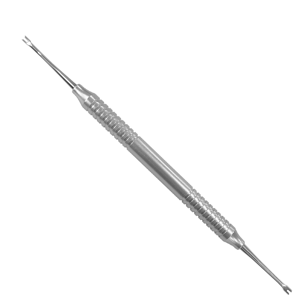 Indicado para realização de dobras e acomodação de ligaduras metálicas e elásticas nos canais dos bráquetes e demais aparelhos ortodônticos.