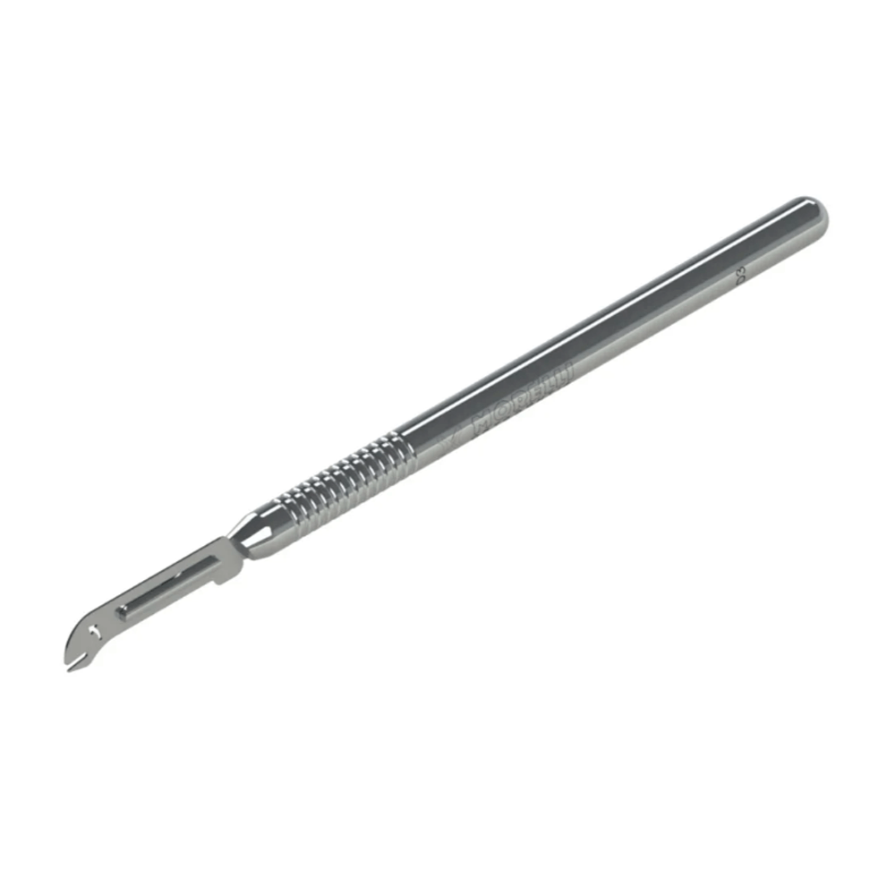 Seu encaixe permite ainda o uso para lâminas de bisturis.
