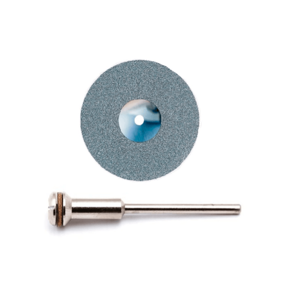 Indicado para ajuste de peças protéticas. - Aço Inoxidável e diamante. Modo de usar: Encaixe o disco no mandril para discos e na peça reta, acione a peça reta e aplique sobre a superficie da prótese.