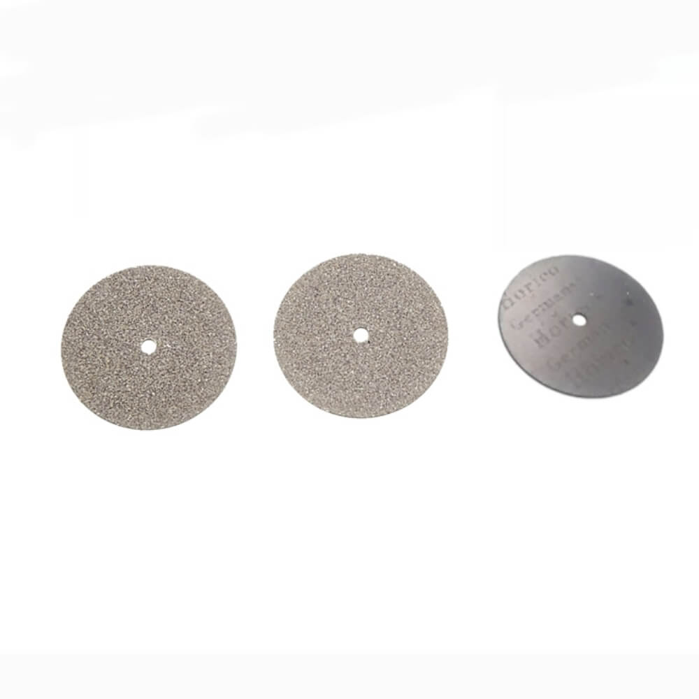 - Para utilização em mandril - São fabricados em aço inoxidável com uma ligação galvânica nobre; - Podem ser esterilizados em autoclave; - Diâmetro: 22mm; - Espessura: 0,30mm; - Monoface - Autoclaváveis; - Referência: 232-7/8.