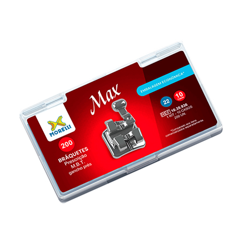 APLICAÇÃO Indicado para o tratamento de maloclusões dentárias. BENEFÍCIOS Desenhados especialmente para suportar os esforços mastigatórios, os Bráquetes da linha MAX possuem construção sólida através da moldagem -MIM, a moldagem de pós metálicos por injeção é uma técnica de fabricação estabelecida e comprovada para a produção de peças metálicas pequenas, completas, de tolerância justa e de alto desempenho. Isto se traduz em controle das forças ortodônticas sem esquecer a delicadeza da estética. CARACTERÍSTICAS Base com curvaturas cérvico-oclusais e mésio distais, que melhoram a acomodação ao dente na colagem. Base moldurada, com pinos quadrados e jateada, onde ensaios recentes comprovaram resistência de colagem superior aos bráquetes com base teladas. Garras "cavadas" para melhor acomadação das ligaduras elásticas e amarrilhos. Marcação central em "V", para facilitar o posicionamento do instrumento, e o alinhamento do braquete ao longo eixo dos dentes durante a colagem. Slot com arestas arredondadas que favorecem a movimentação dos arcos, mesmos em casos de apinhamentos e desnivelamentos severos.