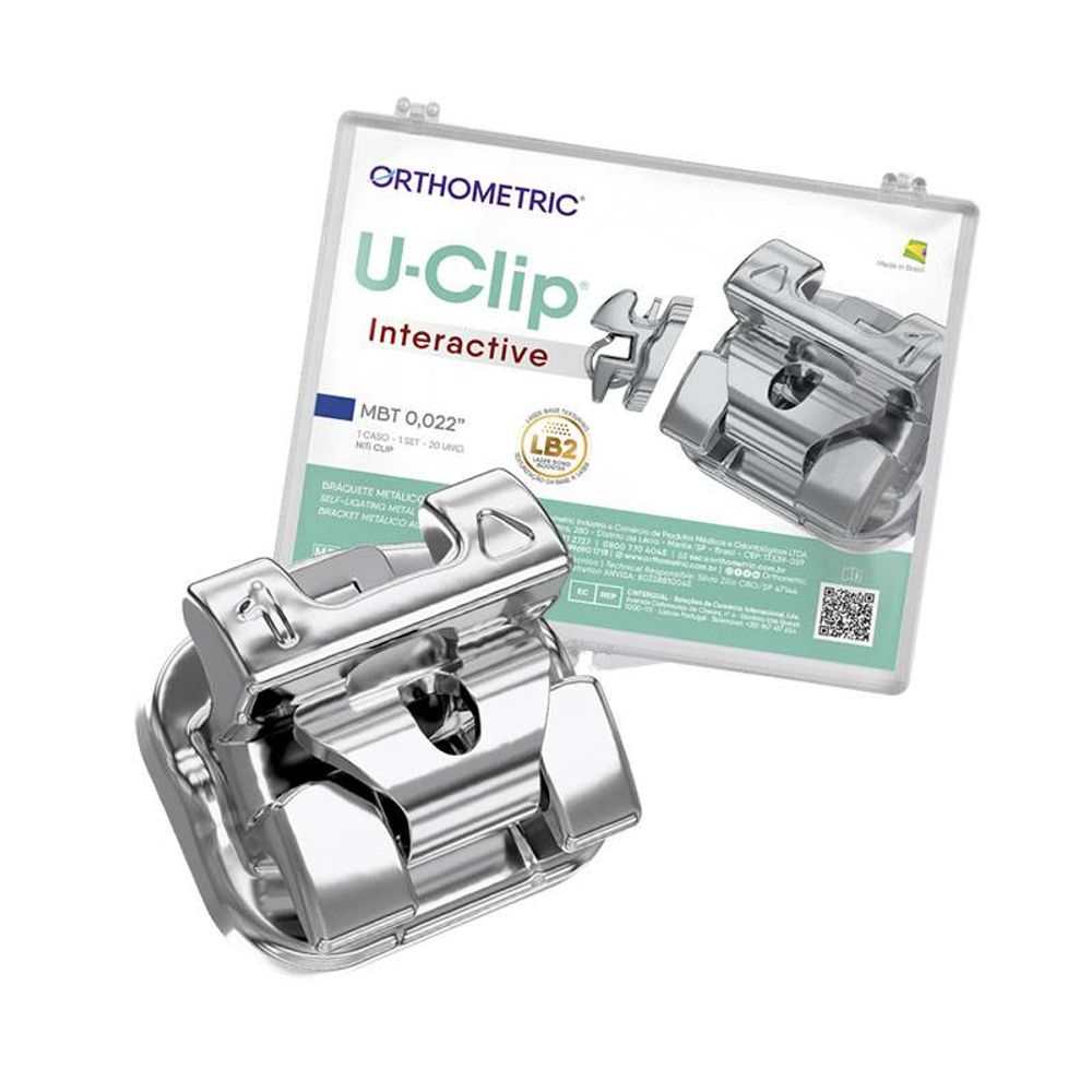 O Bráquete de Aço Autoligado Interativo U-Clip MBT 0,022, da Orthometric, foi desenvolvido para oferecer máxima eficiência e durabilidade durante o tratamento ortodôntico. Seu sistema autoligado elimina a necessidade de ligaduras elásticas, otimizando os procedimentos em todas as fases do tratamento.