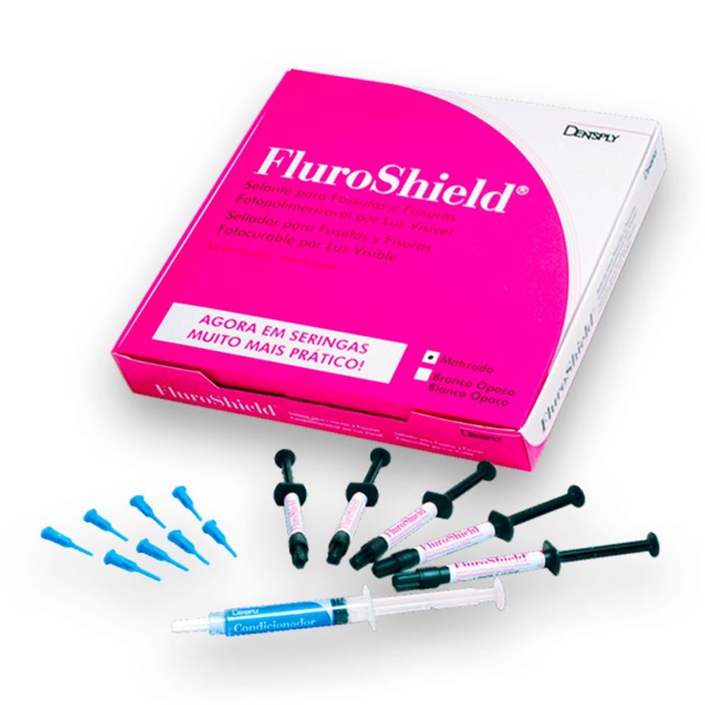 O Kit de Selante Fluroshield da Dentsply Sirona é ideal para você que procura um selante odontológico que permite aplicações facilitadas, precisa e ágeis para reduzir a necessidade de ajustes na oclusão após aplicação. O Fluroshield é indicado como selante de fissuras da face de dentes posteriores que apresentam anatomia complexa, em pacientes com alta atividade cariogênica, também em dentes recém erupcionados.