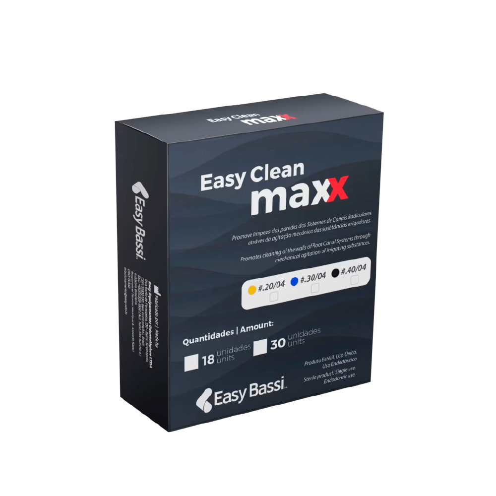 • Pontas variadas: Disponível em três opções de diâmetros (#.20, #.30 e #.40 mm) com taper .04, o Easy Clean Maxx permite ao operador adaptar o dispositivo à anatomia específica de cada canal preparado;