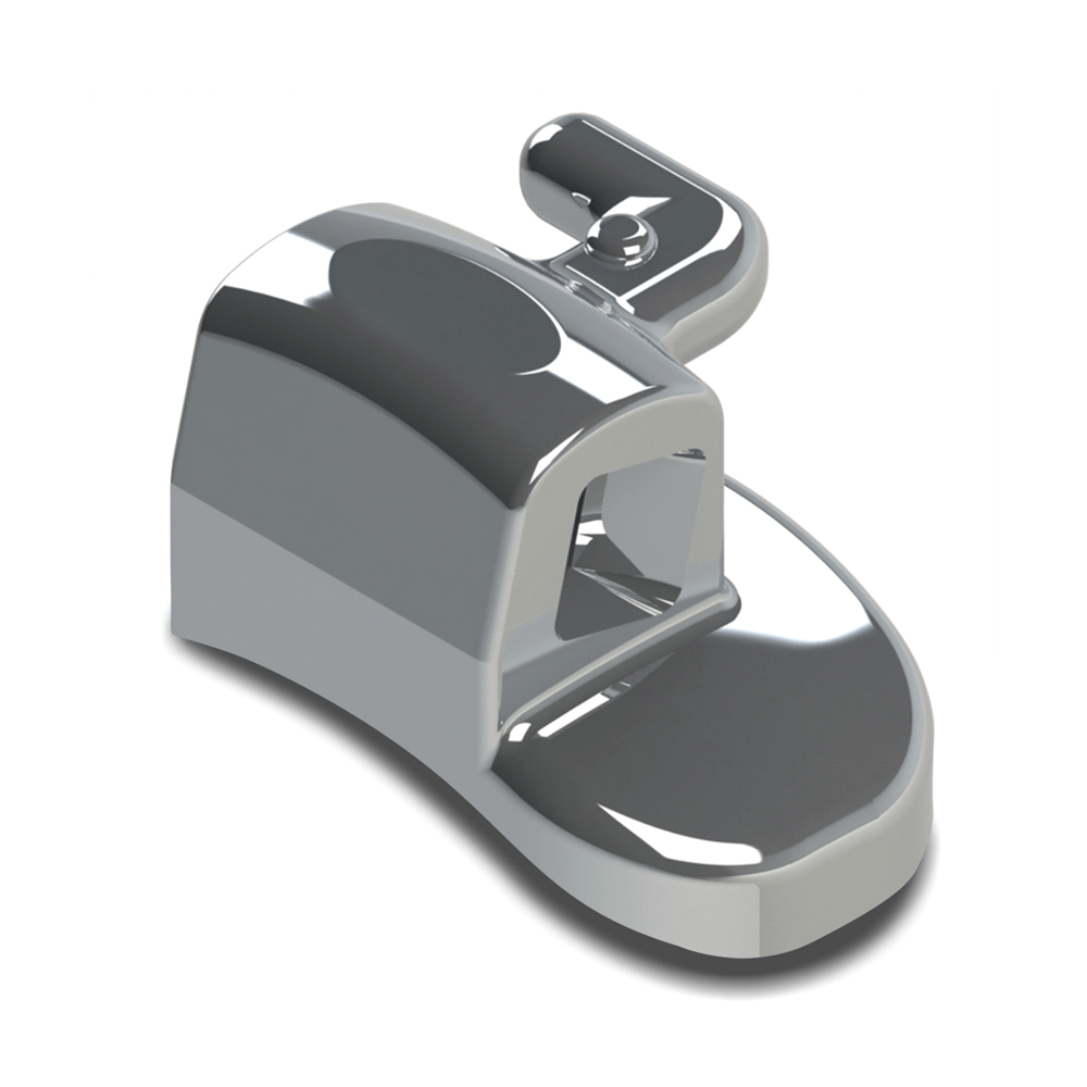 Entrada afunilada do slot para facilitar a inserção do arco.Base deslocada para Cervical e para Mesial.