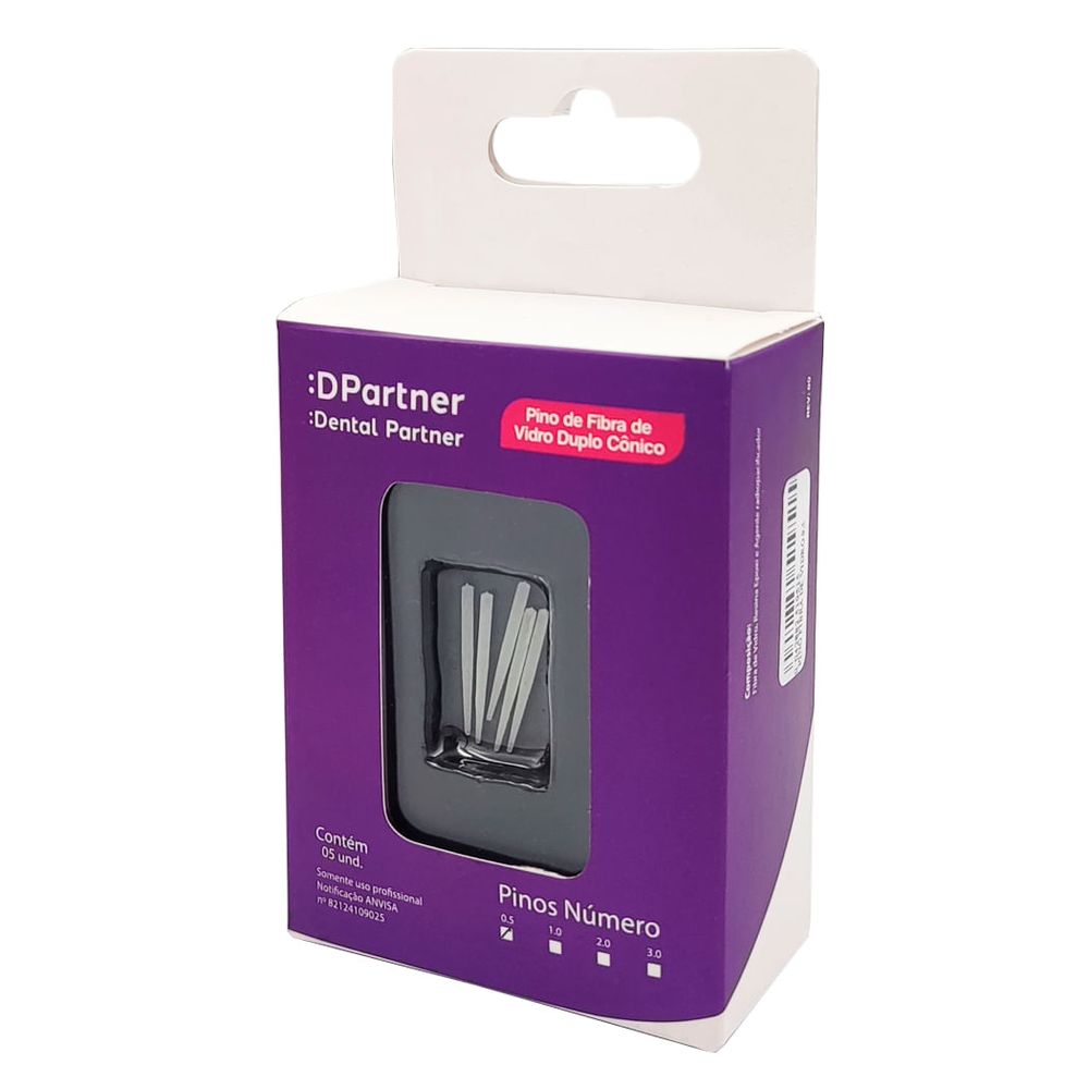 O Pino de Fibra de Vidro Duplo Cônico da Dental Partner é um componente protético avançado, projetado para reforçar e reconstruir dentes que sofreram perda significativa de estrutura coronária. Fabricado com fibras de vidro de alta resistência, ele é pré-silanizado e tem um formato que combina duas conicidades, proporcionando uma adaptação ideal ao canal radicular. Sua translucidez permite a fotopolimerização completa dos cimentos resinosos, e sua elasticidade é semelhante à da dentina, minimizando o risco de fraturas.