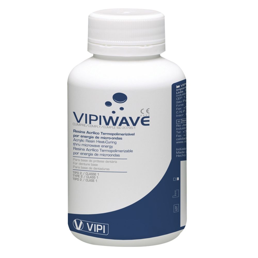 Resina acrílica termopolimerizável em (Pó): Polimetilmetacrilato, Peróxido de Benzoíla e Pigmentos Biocompatíveis.